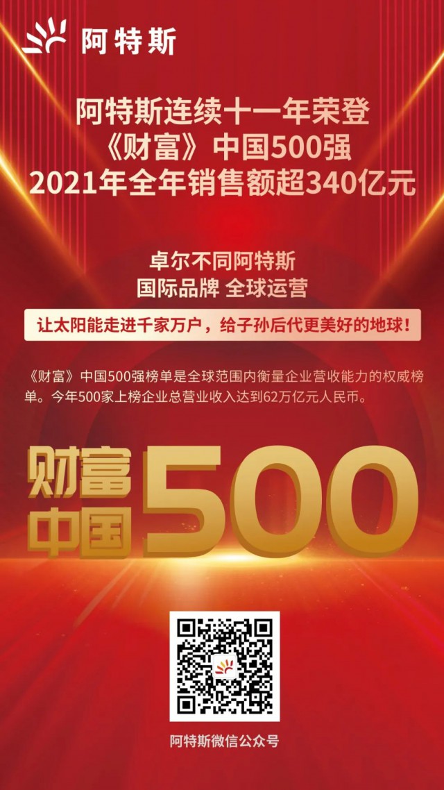 7月12日,財(cái)富中文網(wǎng)發(fā)布2022年《財(cái)富》中國500強(qiáng)排行榜,阿特斯陽光電力集團(tuán)憑借2021年340億元營收再次榮登榜單。這是阿特斯集團(tuán)連續(xù)第十一年上榜,充分彰顯了公司高質(zhì)量可持續(xù)發(fā)展的澎湃動(dòng)力。