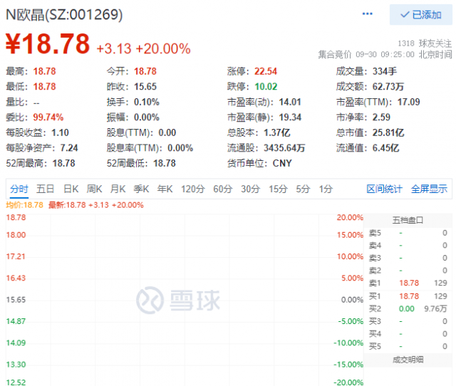 9月30日,石英坩堝第一股歐晶科技(SZ:001269)正式登陸深交所!公司股票發(fā)行價(jià)格為15.65元/股,發(fā)行市盈率為17.03倍。截至今早開(kāi)盤(pán),公司股價(jià)報(bào)18.78元/股,漲幅為20%,總市值達(dá)到25.81億元。