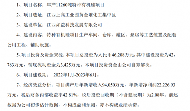 2021年10月27日,富祥藥業(yè)發(fā)布關于全資子公司投資建設年產11260噸特種有機硅項目的公告。