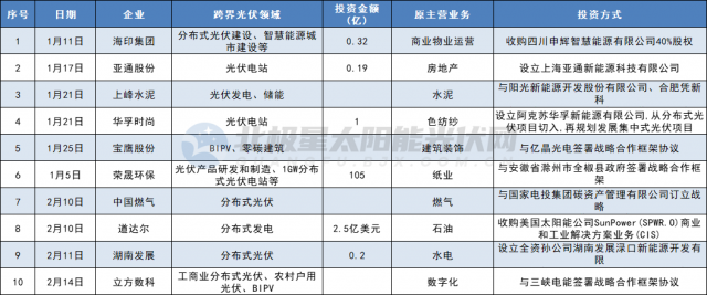 各家公司投資跨界方式不盡相同,有通過收購、設(shè)立光伏公司,或是投資新建光伏項(xiàng)目,或是與其他企業(yè)共建新公司,進(jìn)入領(lǐng)域從多晶硅、硅片、電池組件、光伏膠膜輔材以及光伏電站等多個細(xì)分賽道。