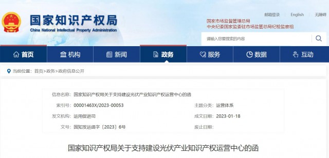 1月30日,北京市知識產(chǎn)權局發(fā)布關于支持建設光伏產(chǎn)業(yè)知識產(chǎn)權運營中心的函,提出支持北京晶澳太陽能光伏科技有限公司建設光伏產(chǎn)業(yè)知識產(chǎn)權運營中心。并表示,希望運營中心緊密圍繞增強產(chǎn)業(yè)鏈供應鏈穩(wěn)定性和競爭力,融合相關知識產(chǎn)權服務資源,著力培育知識產(chǎn)權運營服務能力,促進知識產(chǎn)權高質(zhì)量創(chuàng)造、高水平布局和高效益運用,助推產(chǎn)業(yè)高質(zhì)量發(fā)展。
