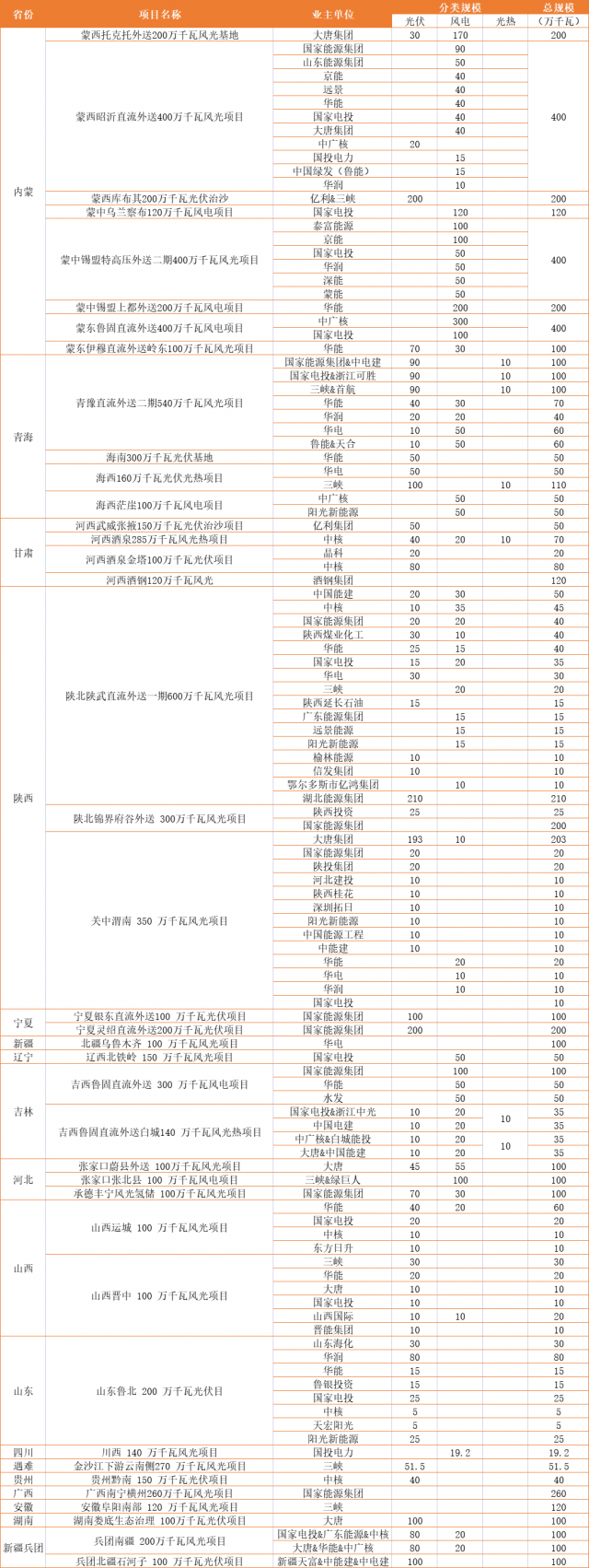 國(guó)家級(jí)大基地規(guī)劃及業(yè)主名單