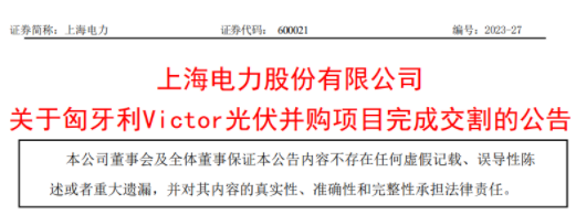 近日,公司全資子公司羲和新能源發(fā)展有限公司已完成匈牙利Victor光伏項(xiàng)目100%股權(quán)的交割手續(xù),最終交易對價(jià)約3700萬歐元(約2.7億元人民幣)。匈牙利Victor項(xiàng)目資產(chǎn)包含2家項(xiàng)目公司,總裝機(jī)容量約13.2萬千瓦。項(xiàng)目預(yù)計(jì)于2023年開工,計(jì)劃于同年并網(wǎng),投產(chǎn)后預(yù)計(jì)年發(fā)電量約1億千瓦時(shí)。
