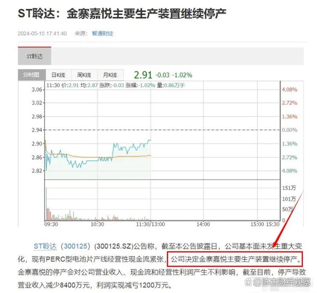 據(jù)業(yè)內(nèi)消息顯示,ST聆達股份(300125)日前發(fā)布公告,稱由于公司基本面未發(fā)生重大變化,現(xiàn)有PERC型電池片產(chǎn)線經(jīng)營性現(xiàn)金流緊張?;诖?,聆達股份宣布旗下的光伏制造工廠-金寨嘉悅繼續(xù)保持停產(chǎn)狀態(tài),但具體的復工時間并未確定。值得一提的是,今年2月份,金寨嘉悅就因為市場等因素而宣布于3月5日開始放假,并預計今年6月1日復工。然而,在預計的復工日期臨近之際,金寨嘉悅被宣布繼續(xù)停產(chǎn)。業(yè)內(nèi)人士認為,此次宣布繼續(xù)放假,預示著這家光伏大廠正面臨前所未有的困難,短期內(nèi)復工或是無望。