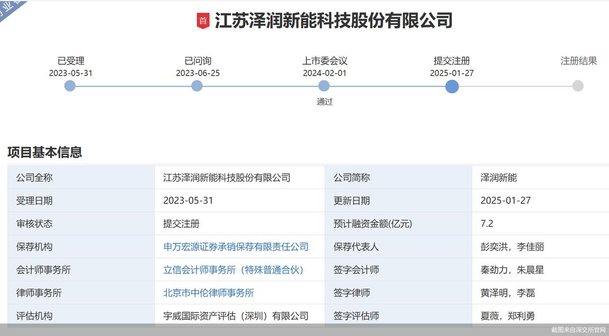 深交所官網顯示,澤潤新能創(chuàng)業(yè)板IPO已于近日提交注冊。