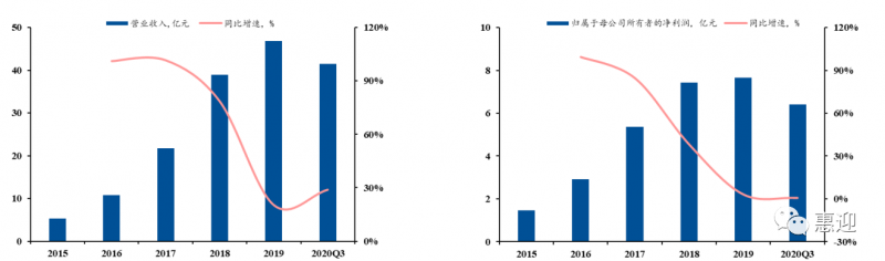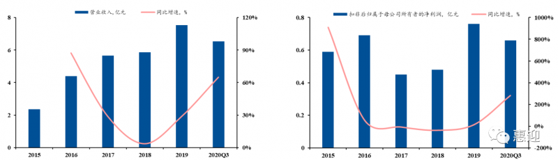 公司是光伏自動(dòng)化組件設(shè)備的頭部供應(yīng)商,下游客戶涵蓋國內(nèi)多家知名光伏組件企業(yè),同時(shí)積極布局新型組件設(shè)備,向壁壘較高的電池設(shè)備領(lǐng)域延伸,探索新增長點(diǎn)。2015-2019 年,公司業(yè)績(jī)大幅增長,營業(yè)收入從 2.92 億元增長至 7.9 億元,CAGR 為 31.08%。截止 2020 年第三季度,公司的歸母凈利潤為 0.65 億元,同比增長 65%,超過 2019 年全年歸母凈利潤。合同負(fù)債已達(dá) 3.71 億元,為 2021 年業(yè)績(jī)奠定良好基礎(chǔ)。2019 年,光伏組件自動(dòng)化生產(chǎn)線作為公司的主營業(yè)務(wù),占總營收的 93.11%,輔之以串焊機(jī)、層壓機(jī)等價(jià)值量較高的單機(jī)設(shè)備。
