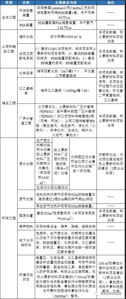 (4) 建設(shè)內(nèi)容:擬建成90萬噸/年丙烷脫氫制丙烯裝置,配套建設(shè)PSA提氫裝置以及循環(huán)水場、變電所等公輔設(shè)施,以及萬景至中景科技園之間的連接管線,其余的公建和輔助工程依托上景新材料項目、以及中景科技園和園區(qū)已建成設(shè)施。