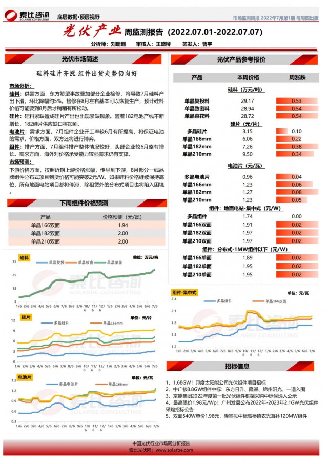 光伏產(chǎn)業(yè) 周監(jiān)測報告
