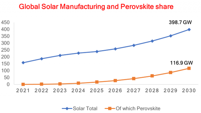 鈣鈦礦在過去十年中作為一種新型的高效太陽(yáng)能電池材料脫穎而出,其功率轉(zhuǎn)換效率達(dá)到了25.7%。(1,2) 鈣鈦礦光活性材料具有固有的優(yōu)勢(shì),可實(shí)現(xiàn)高功率轉(zhuǎn)換效率,例如長(zhǎng)載流子擴(kuò)散長(zhǎng)度、高載流子遷移率、低激子結(jié)合能、高吸收系數(shù)和通過交換前體組分的帶隙可調(diào)性。(3,4) 這些材料的另一個(gè)重要優(yōu)點(diǎn)是可以在低溫下通過溶液方法來沉積薄膜,它可以通過高通量的卷對(duì)卷工藝在柔性聚合物基材上進(jìn)行經(jīng)濟(jì)高效的生產(chǎn)。(5) 預(yù)計(jì)到2030 年,鈣鈦礦太陽(yáng)能技術(shù)將超過全球光伏市場(chǎng)的29%。(6)