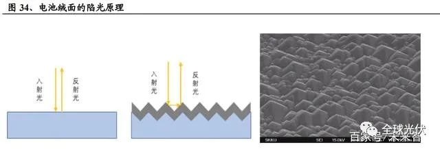 由于硅片在切割過(guò)程中表面會(huì)產(chǎn)生大量的油污,金屬污染和機(jī)械損傷,因此 要對(duì)硅片進(jìn)行酸洗(多晶)或者堿洗(單晶),利用各向同行和各向異性原理對(duì) 硅片表面進(jìn)行腐蝕,去除硅片表面機(jī)械損傷層;清除表面油污和金屬雜質(zhì),形成 潔凈表面;形成起伏不平的絨面,使入射光在表面進(jìn)行多次反射和折射,延長(zhǎng)光 程,減少光學(xué)損失,金剛線切割硅片經(jīng)過(guò)清洗制絨后表面反射率可從50%降低至 15%以下。