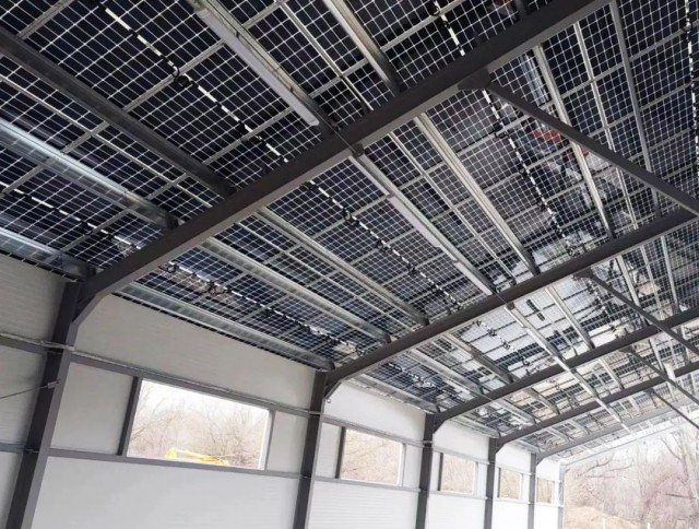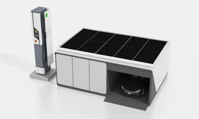 中來匈牙利墻體結(jié)構(gòu)的光伏車棚項(xiàng)目,只需要30塊組件,連接充電樁,利用棚頂?shù)墓夥M件發(fā)電,可以解決至少6輛新能源車的充電問題。