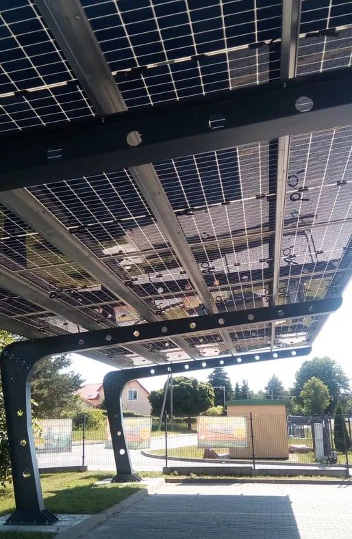 作為歐洲光伏需求旺盛的市場(chǎng),波蘭早就將“光伏+車棚”滲透于應(yīng)用當(dāng)中,出現(xiàn)了一個(gè)個(gè)“綠色”車棚的身影。中來JW-HD144N高功率、高性價(jià)比的雙面組件替代了傳統(tǒng)車棚的膜結(jié)構(gòu)鋼頂,不僅可以遮風(fēng)擋雨、節(jié)能環(huán)保而且實(shí)用性強(qiáng),深藍(lán)色的光伏電板在陽光下熠熠生輝,為當(dāng)?shù)卦鎏砹艘坏懒聋惖娘L(fēng)景。