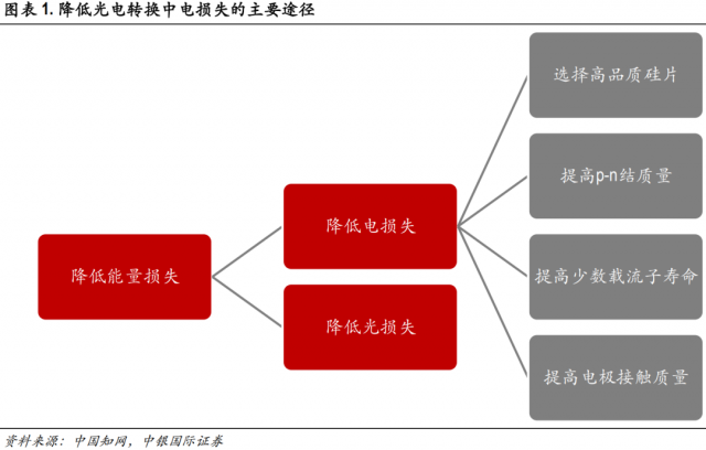 一般而言,提升光伏電池片光電轉(zhuǎn)換效率的核心是降低光電轉(zhuǎn)換過程中的能量損失,主要是光損失與電損失。其中降低電損失的主要方法包括選擇高品質(zhì)硅片、提高p-n結(jié)質(zhì)量、提高少數(shù)載流子壽命、降低材料體電阻等。在提高少數(shù)載流子壽命這一途徑中,通過改善晶面缺陷來降低襯底硅片表面的復合速率(即鈍化接觸)是光伏電池提效的重要研究和產(chǎn)業(yè)化方向。