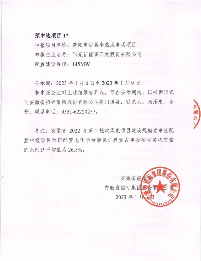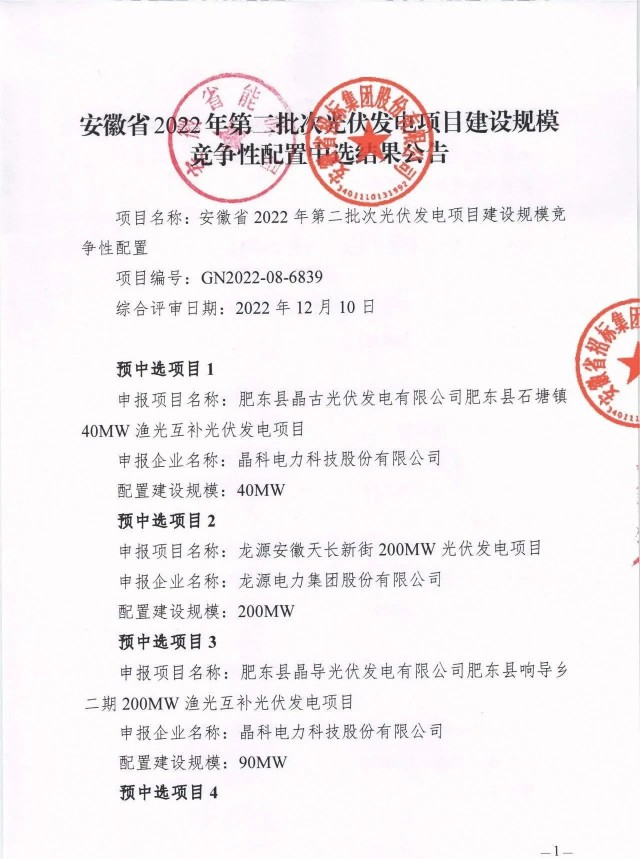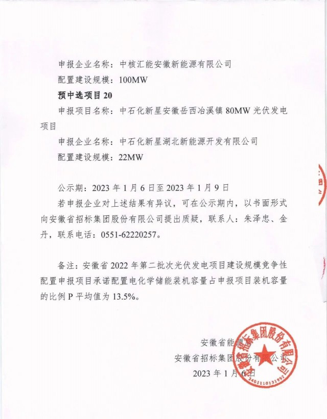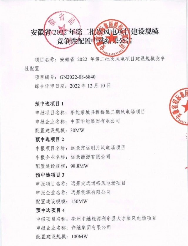1月6日,安徽省能源局公示了2022年第二批光伏、風(fēng)電項(xiàng)目競爭性配置優(yōu)選結(jié)果,共計(jì)37個(gè)項(xiàng)目入選,其中光伏規(guī)模為1.5GW,項(xiàng)目20個(gè);風(fēng)電項(xiàng)目規(guī)模為1.5GW,項(xiàng)目17個(gè)。