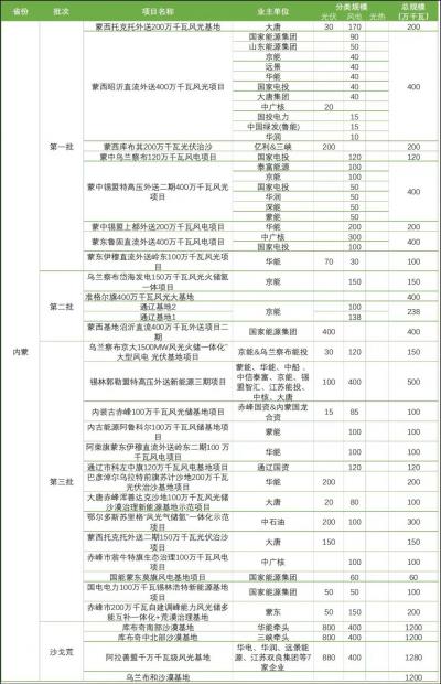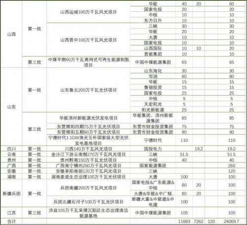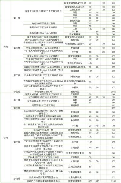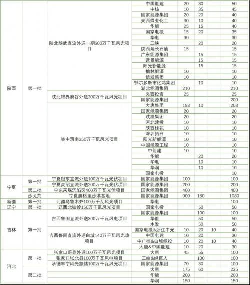 隨著相關(guān)各類(lèi)信息的不斷披露,各個(gè)風(fēng)光大基地項(xiàng)目的業(yè)主單位也逐漸明確。