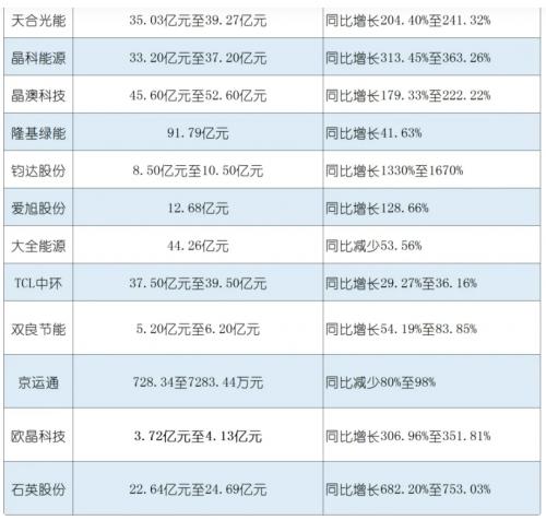 天合光能預(yù)計(jì)2023年半年度實(shí)現(xiàn)扣非歸母凈利潤(rùn)35.03億元至39.27億元,同比增長(zhǎng)204.40%~241.32%;晶科能源公告,預(yù)計(jì)上半年扣非歸母凈利潤(rùn)預(yù)計(jì)為33.2億元至37.2億元,同比大增313.45%到363.26%;晶澳科技預(yù)計(jì)上半年實(shí)現(xiàn)扣非凈利潤(rùn)45.6億元至52.6億元,同比增長(zhǎng)約兩倍。