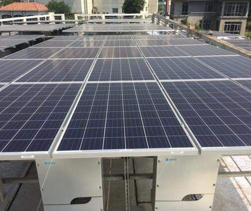 并網(wǎng)點就近380V接入電網(wǎng)。因屋頂周圍無承重墻,考慮逆變器的防護(hù),通風(fēng)及接線方便,最終確定逆變器掛在組件支架上的方案。