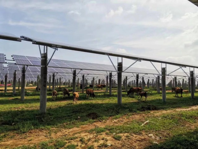 該項目的最大特點為“一地三用”,即種植、養(yǎng)殖和光伏三產(chǎn)融合,最大化地利用土地資源。光伏板架設(shè)距地面3米以上,為農(nóng)業(yè)種植和養(yǎng)殖留下空間,不僅夏天能避免太陽直射,起到降溫效果,還能防止暴雨、凝凍等自然災(zāi)害,對農(nóng)業(yè)種植起到很好的保護作用。項目建成后,以種植養(yǎng)殖為主的“板”下經(jīng)濟可提高農(nóng)民收入,助推鄉(xiāng)村振興;而“板”上發(fā)電可帶動麻城市能源綠色、低碳化發(fā)展,為老區(qū)發(fā)展提供新動能。