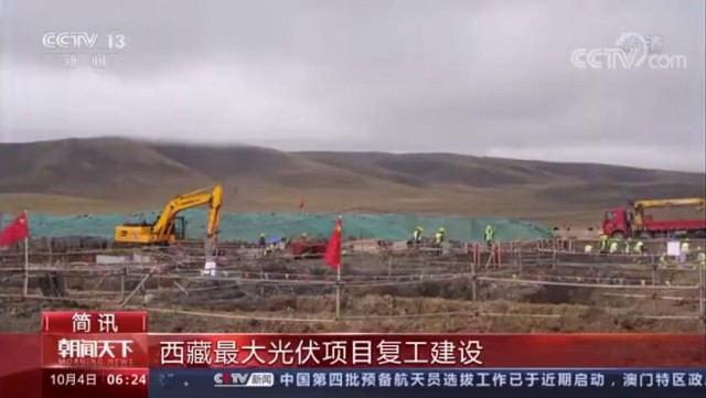 這是西藏最大的光伏保供項目——西藏華電那曲色尼區(qū)12萬千瓦光伏發(fā)電電力保供項目建設(shè)現(xiàn)場場景。
