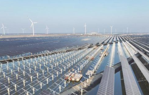 2月20日,施工人員在施工現(xiàn)場加緊建設(shè)。連日來,如東沿海的華能如東200兆瓦“漁光互補(bǔ)”光伏發(fā)電項(xiàng)目快速有序推進(jìn)。該項(xiàng)目占地面積3000余畝,建成后,年均發(fā)電量約23390萬千瓦時,相當(dāng)于每年節(jié)約標(biāo)煤7萬噸,減排二氧化碳15.43萬噸。
