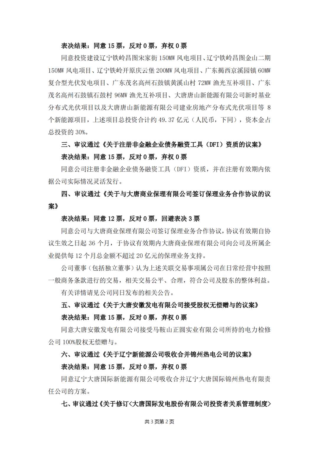 2月22日,大唐發(fā)電發(fā)布公告稱,公司召開第十一屆九次董事會(huì)會(huì)議,同意投資建設(shè)8個(gè)新能源項(xiàng)目,總規(guī)模超過包括: