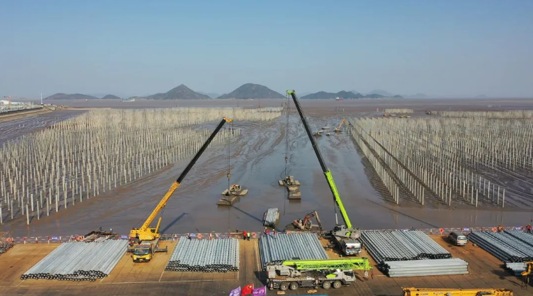 在灘涂上施工,受潮水漲落、淤泥沉降等條件制約,材料運輸困難,有效施工時間短,還要確保每根十多米長的管樁筆直精準到位,誤差控制在2厘米以內,難度可想而知。