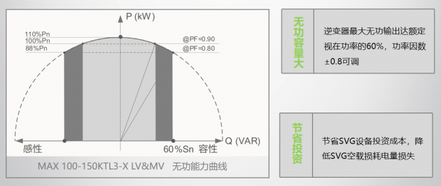 但隨著光伏電站的投運,原來的無功補償裝置的補償容量不夠用,需要額外購買無功補償裝置,這時逆變器可通過監(jiān)測并網(wǎng)點負載端的功率因數(shù),在發(fā)有功電量的同時,智能調(diào)整功率因數(shù)同時發(fā)一部分無功電量進行智能無功補償,這樣可以幫用戶節(jié)省無功補償裝置的費用,也可以減少無功補償裝置空載損耗的電量。