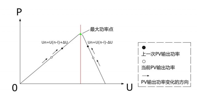 逆變器通過測量電流、電壓和功率,判斷出當前工作點與峰值點的位置關系,智能調(diào)節(jié)工作點電壓(或電流),使其向峰值功率點靠攏,從而使光伏系統(tǒng)始終保持運行在峰值功率點附近。