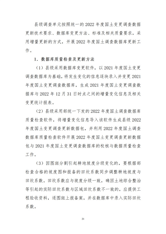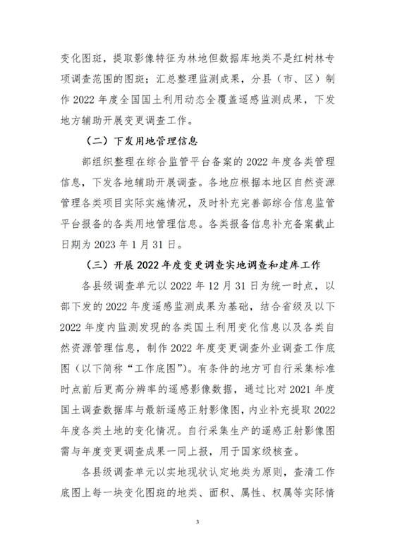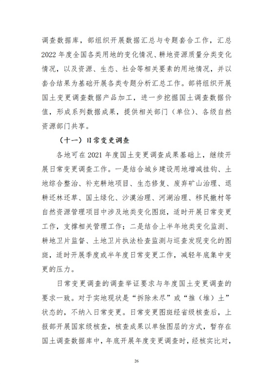 根據(jù)工作需要,部組織編制了《2022年度全國國土變更調(diào)查實(shí)施方案》,并對《年度國土變更調(diào)查技術(shù)規(guī)程》作了修訂,隨本通知一并印發(fā)執(zhí)行。