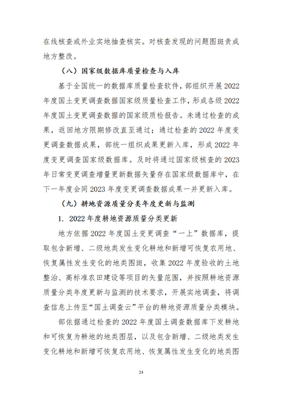 2023年6月15日前,部組織完成2022年度變更調(diào)查最終數(shù)據(jù)庫質(zhì)檢、更新入庫及數(shù)據(jù)匯總分析工作。同時,下發(fā)2022年度耕地資源質(zhì)量分類更新涉及的相關(guān)圖層。
