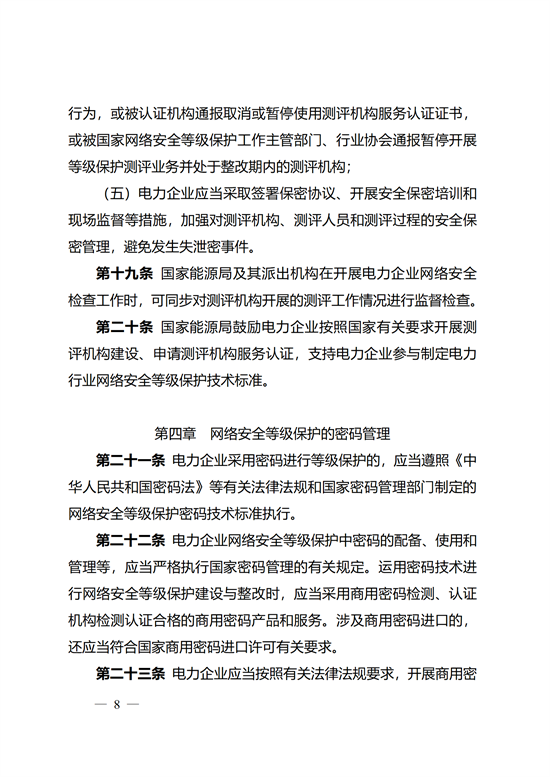 12月12日,國家能源局印發(fā)關于《電力行業(yè)網(wǎng)絡安全等級保護管理辦法》的通知,通知要求,規(guī)范電力行業(yè)網(wǎng)絡安全等級保護管理,提高電力行業(yè)網(wǎng)絡安全保障能力和水平。