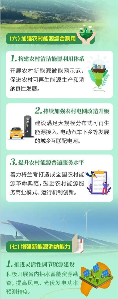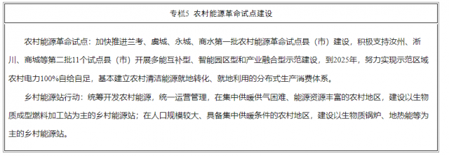 著力將蘭考打造成全國農(nóng)村能源革命典范,持續(xù)推進(jìn)虞城、汝州等14個(gè)農(nóng)村能源革命試點(diǎn)縣(市)建設(shè),探索建立多能互補(bǔ)、城鄉(xiāng)統(tǒng)籌的鄉(xiāng)村能源生產(chǎn)消費(fèi)新模式。實(shí)施鄉(xiāng)村能源站行動(dòng),建設(shè)具備農(nóng)村能源診斷檢修、電動(dòng)汽車充換電服務(wù)、生物質(zhì)成型燃料加工等能力的鄉(xiāng)村能源示范站,提高農(nóng)村能源公共服務(wù)能力。推動(dòng)農(nóng)村能源數(shù)字化智能化發(fā)展,并與農(nóng)業(yè)農(nóng)村生產(chǎn)經(jīng)營深度融合,提高農(nóng)村智慧用能水平。鼓勵(lì)農(nóng)村能源服務(wù)商業(yè)模式和運(yùn)行機(jī)制創(chuàng)新,引導(dǎo)社會(huì)主體參與,逐步完善農(nóng)村能源服務(wù)體系。