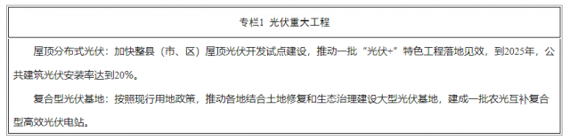 加快整縣(市、區(qū))屋頂光伏開發(fā)試點(diǎn)建設(shè),推動(dòng)一批“光伏+”特色工程落地見效,到2025年,公共建筑光伏安裝率達(dá)到20%。