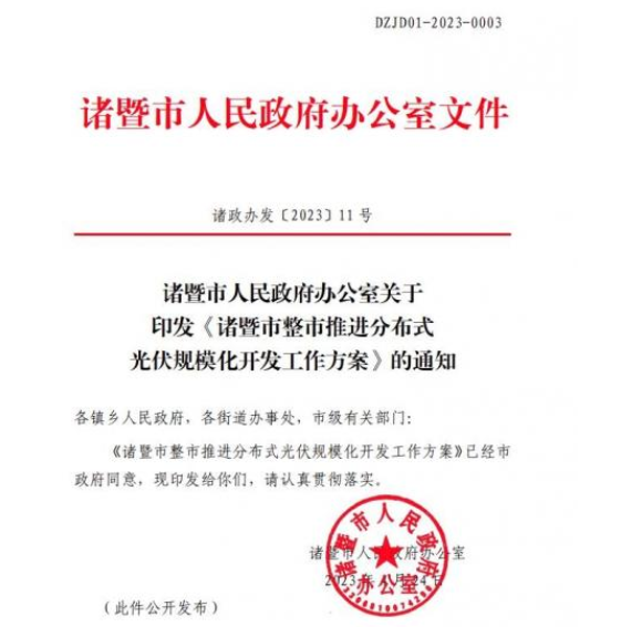諸暨市整市推進(jìn)分布式光伏規(guī)模化開發(fā)工作方案
