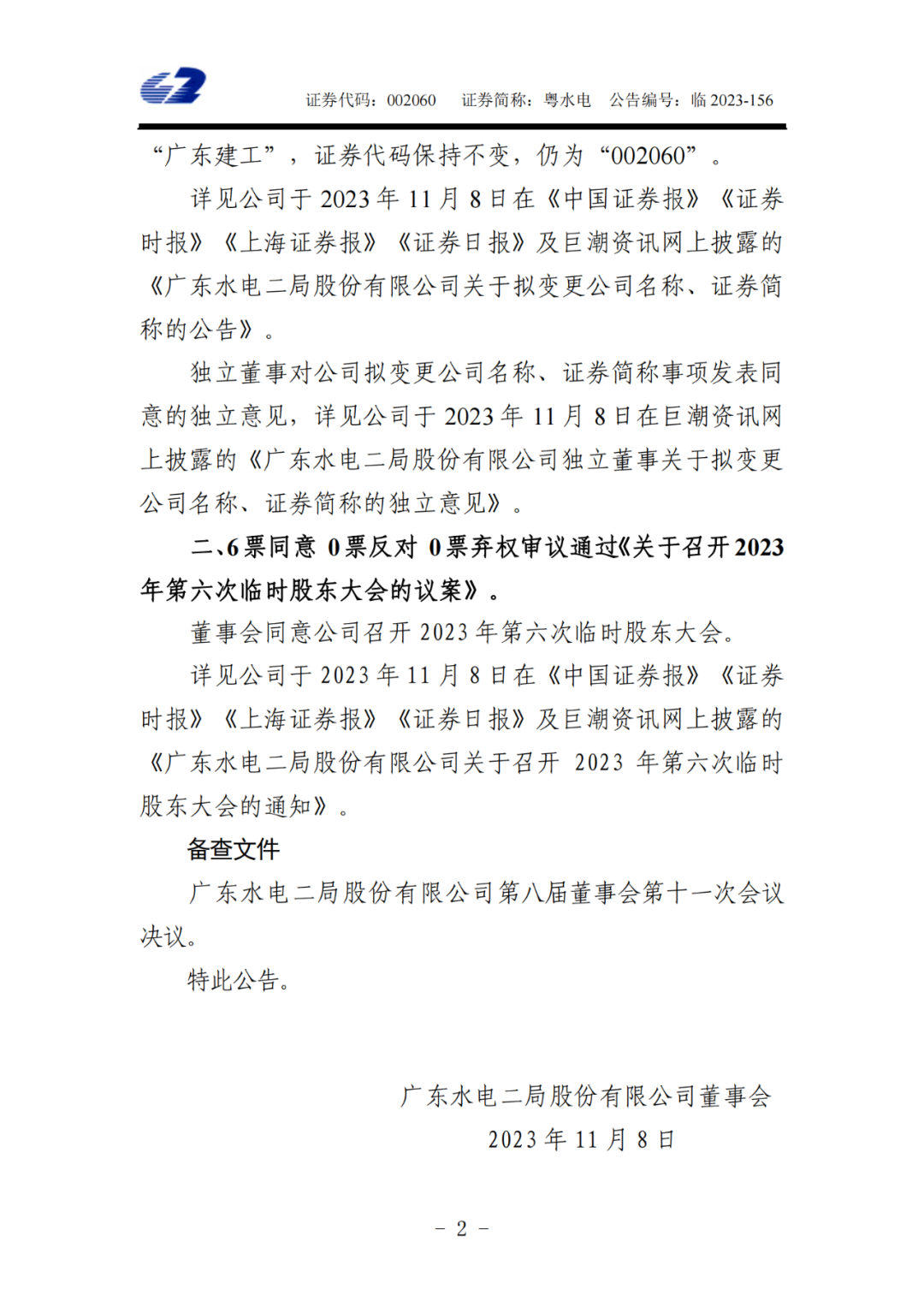 廣東水電二局股份有限公司變更為廣東省建筑工程集團股份有限公司。
