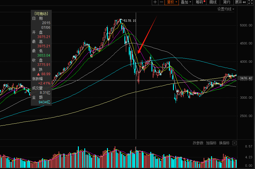 漲停背景:上證指數(shù)從2015年6月12日5166點跌到2015年7月3日3686點,跌幅28.6%。隨后,國家救市政策出臺。2015年7月5日,證監(jiān)會公布救市政策: 1、暫停IPO;2、21家券商合計出資不低于1200億元,用于投資藍籌股ETF;3、證金公司注冊資本增加至1000億,并且央行將協(xié)助證金公司多渠道籌資予以流動性支持等。