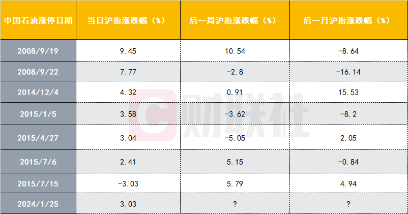 以下為財聯(lián)社總結中國石油歷次漲停情況