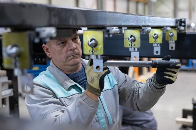 1月26日,在匈牙利比奧托爾巴吉,一名工人在蔚來(lái)能源歐洲工廠(chǎng)工作。新華社發(fā)(弗爾季·奧蒂洛攝)