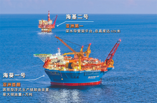 這一天,兩個“能源重器”——亞洲首艘圓筒型浮式生產(chǎn)儲卸油裝置(FPSO)“海葵一號”、亞洲第一深水導管架平臺“海基二號”攜手上崗,標志著我國全類型深水油氣裝備的設(shè)計、建造和安裝能力達到世界一流水平。