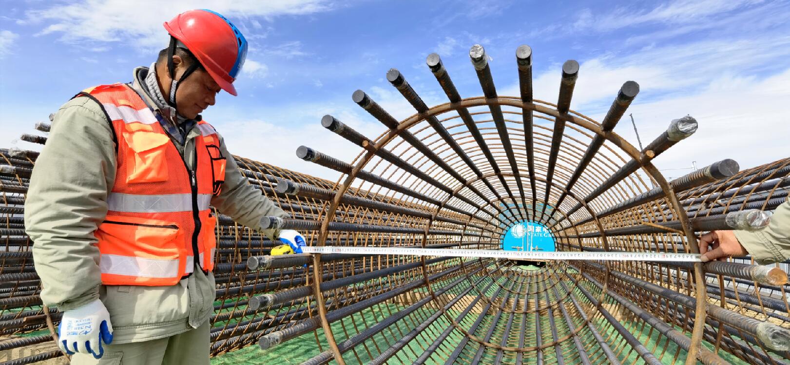 11月9日,在湖北省 鐘祥市豐樂(lè)鎮(zhèn)楓梓院村 ,湖北送變電公司施工員方漢斌在白鶴灘至江蘇±800千伏特高壓直流輸電線路(鄂7標(biāo)段)漢江大跨越現(xiàn)場(chǎng), 認(rèn)真檢查基礎(chǔ)鋼筋籠主筋長(zhǎng)度、直徑。該工程是國(guó)家“西電東送”戰(zhàn)略部署的重點(diǎn)工程,也是加大基礎(chǔ)設(shè)施領(lǐng)域補(bǔ)短板力度的工程之一。工程建成后,對(duì)優(yōu)化國(guó)家能源配置、保障電力安全穩(wěn)定供應(yīng)、推動(dòng)綠色發(fā)展等具有重要戰(zhàn)略意義。(張周、郭暉 攝影)