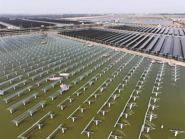 據(jù)了解,該項目總裝機容量為276兆瓦,占地面積8500余畝,充分利用漁塘水域面積,將光伏發(fā)電和漁業(yè)養(yǎng)殖有機結(jié)合起來,實現(xiàn)土地資源的高效利用和生態(tài)開發(fā)。