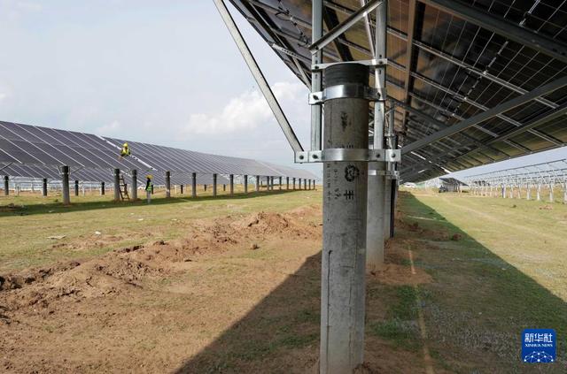 7月21日,工人在承德市豐寧滿族自治縣魚兒山鎮(zhèn)附近的一處光伏發(fā)電場建設(shè)工地工作。