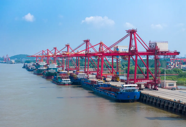近年來,安徽港航集團貫徹實施“向海而興,借港出海”發(fā)展戰(zhàn)略,充分發(fā)揮境內(nèi)長江、江淮運河優(yōu)勢,統(tǒng)籌發(fā)展江海直達、江海聯(lián)運等運輸組織模式,與上海國際港務(wù)集團、浙江海港集團、中遠海運集團、地中海航運、馬士基航運等國內(nèi)外知名企業(yè)持續(xù)深化港航業(yè)務(wù)合作,完善全省水路集裝箱航線網(wǎng)絡(luò)化布局。