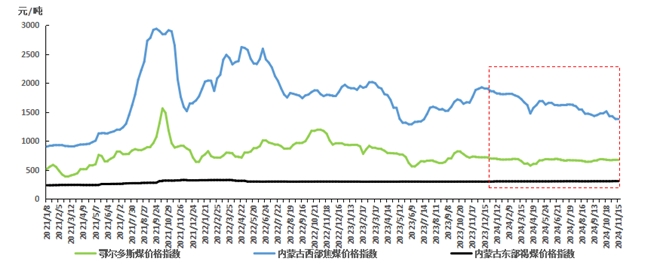 12月2日,內(nèi)蒙古煤炭價(jià)格指數(shù)最新成果在2024年企業(yè)家博鰲論壇上正式發(fā)布。監(jiān)測結(jié)果顯示,2024年,在國內(nèi)煤炭供需結(jié)構(gòu)寬松背景下,內(nèi)蒙古動(dòng)力煤年內(nèi)運(yùn)行相對穩(wěn)定,但較上年均價(jià)有所下跌,西部焦煤價(jià)格在下游需求走弱背景下震蕩回落。