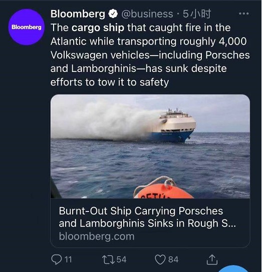 大眾集團也發(fā)表聲明稱,“我們正在與地方當局和船運公司合作,調查事故原因。”