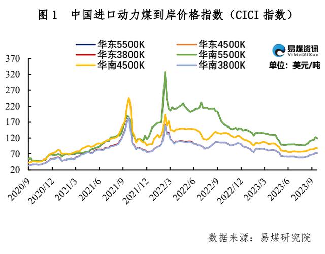 截至10月20日,5500K華東和華南到岸價均為119.20美元/噸,較上期下跌3.80美元/噸,較國內(nèi)煤價低20-25元/噸;4500K華東和華南到岸價均為88.00美元/噸,較上期下跌0.10美元/噸,與國內(nèi)煤價低20-25元/噸;3800K華東和華南到岸價均為72.50美元/噸,較上期下跌0.60美元/噸,較國內(nèi)煤價低10-15元/噸。(理論測算,僅供參考)。