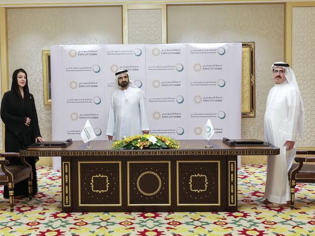 在阿聯(lián)酋副總統(tǒng)兼總理、迪拜酋長(zhǎng)謝赫穆罕默德·本·拉希德·阿勒馬克圖姆的見(jiàn)證下,迪拜世博城與迪拜水電局(DEWA)簽署協(xié)議,全力推進(jìn)使用可再生能源為世博城供電。此次合作標(biāo)志著世博城向2050年凈零排放目標(biāo)邁出重大步伐。