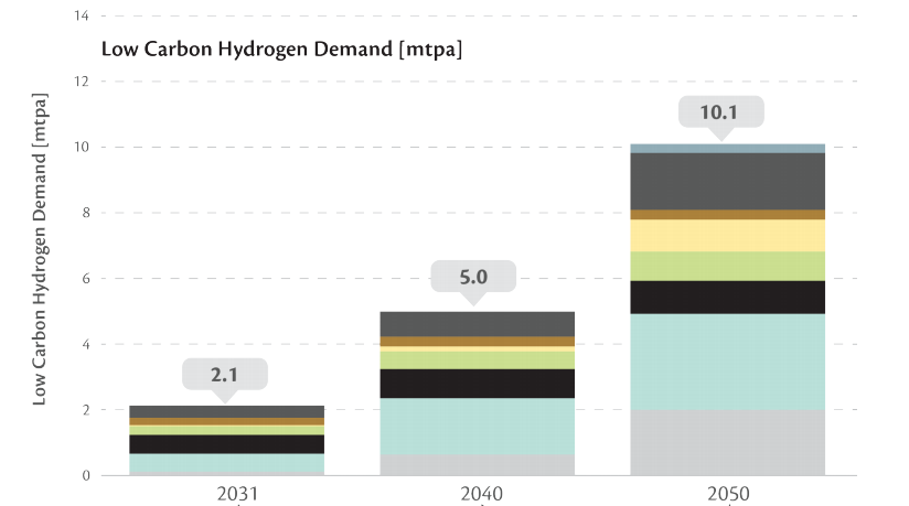 圖注:2031-2050阿聯(lián)酋國內(nèi)氫能需求預測