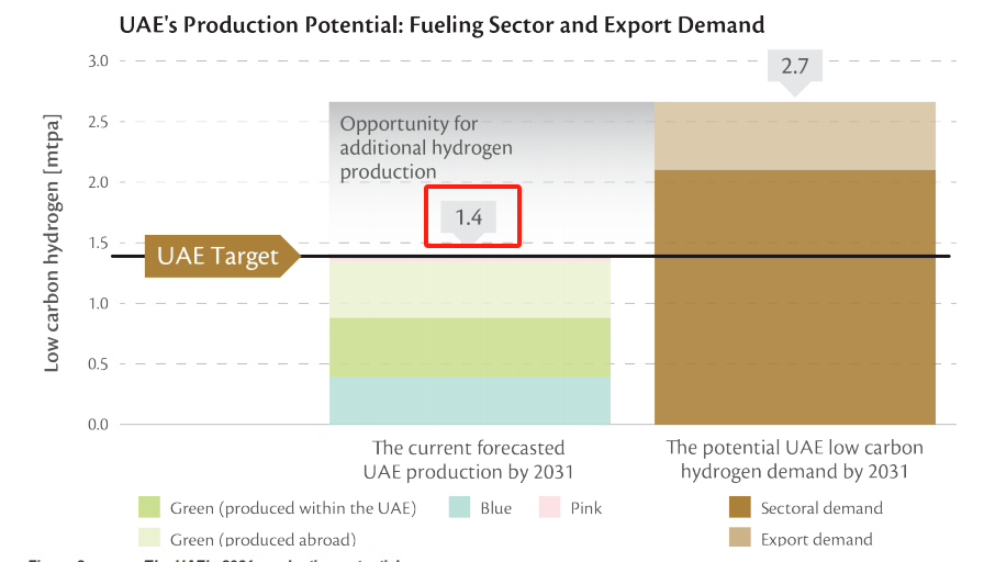 圖注:2031年阿聯(lián)酋的氫能產(chǎn)能預測和需求預測