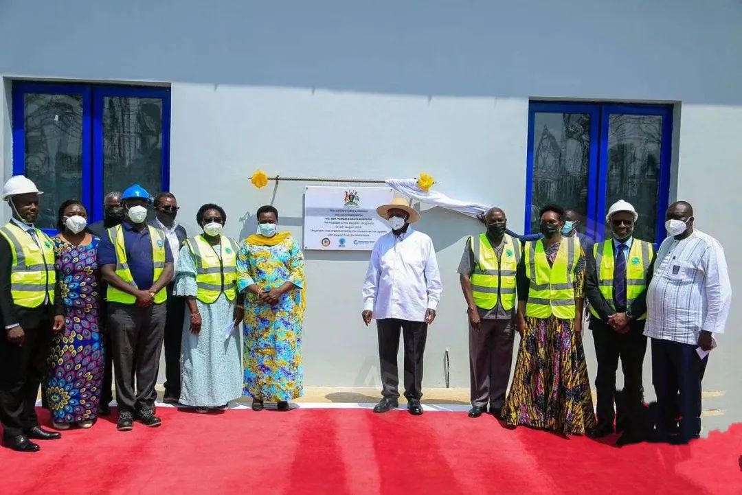 烏干達(dá)總統(tǒng)穆塞韋尼(前排右五)為Nebbi變電站項(xiàng)目揭牌
